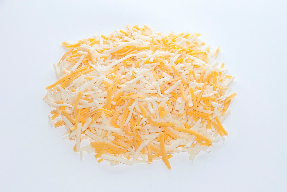 CHEDDAR CHEESE (PASTEURIZED MILK, CHEESE CULTURE, SALT, ENZYMES, COLOR ADDED), MONTEREY JACK CHEESE (PASTEURIZED MILK, CHEESE CULTURE, SALT, ENZYMES), POTATO STARCH ADDED TO PREVENT CAKING, NATAMYCIN (A NATURAL MOLD INHIBITOR). CONTAINS: MILK