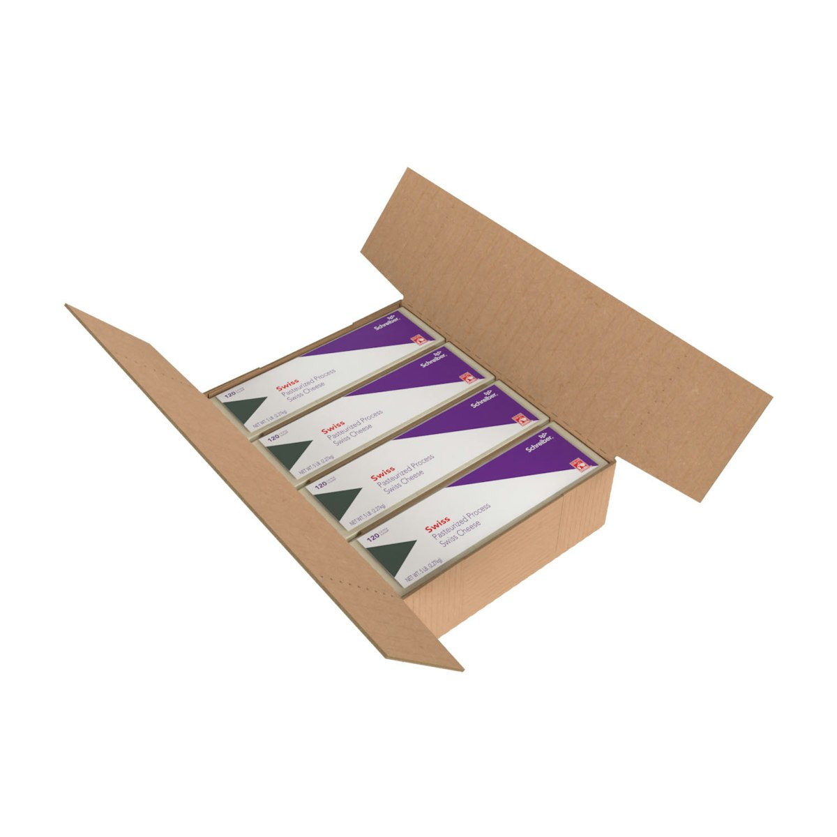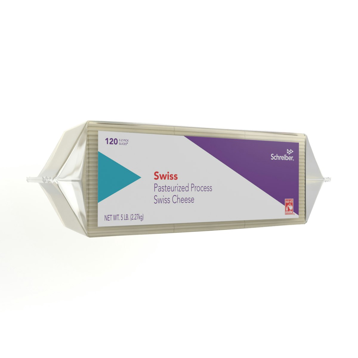 SCHREIBER PASTEURIZED PROCESS SWISS SLICES – 4/5# FLOW THROUGH WRAPPER 120 SLICES