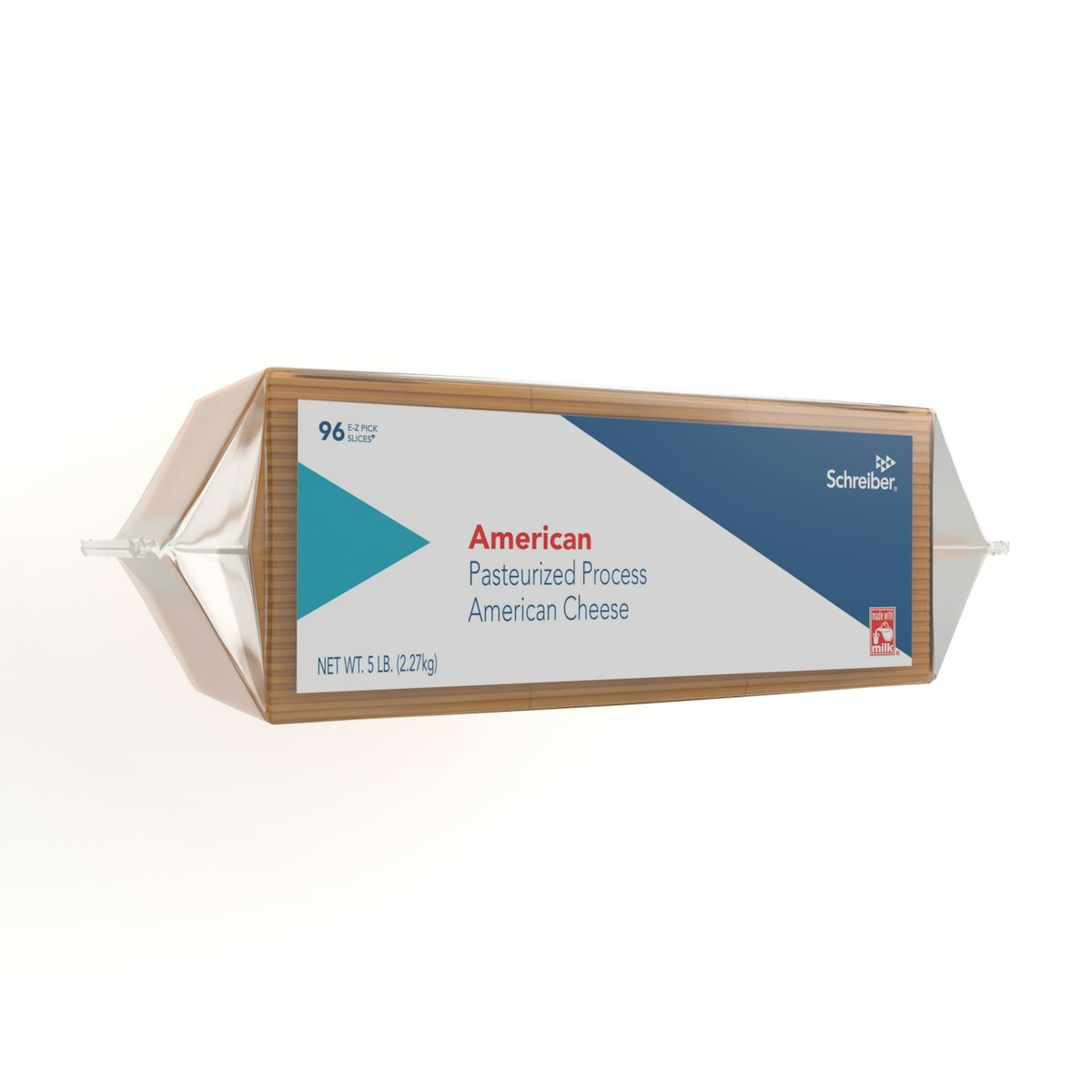 SCHREIBER YELLOW PASTEURIZED PROCESS AMERICAN SLICES – 4/5# FLOW THROUGH WRAPPER 96 SLICES