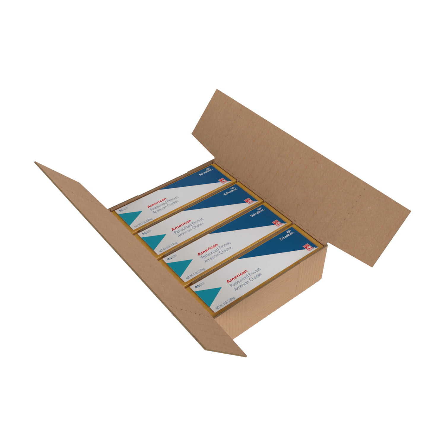 SCHREIBER YELLOW PASTEURIZED PROCESS AMERICAN SLICES – 4/5# FLOW THROUGH WRAPPER 96 SLICES