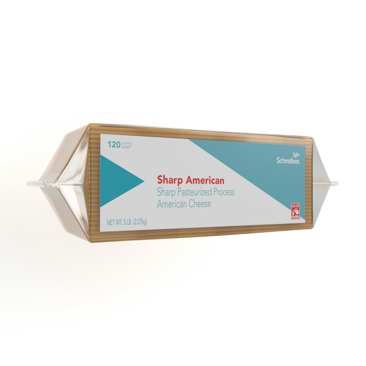 SCHREIBER YELLOW PASTEURIZED PROCESS SHARP AMERICAN SLICES – 4/5# FLOW THROUGH WRAPPER 120 SLICES