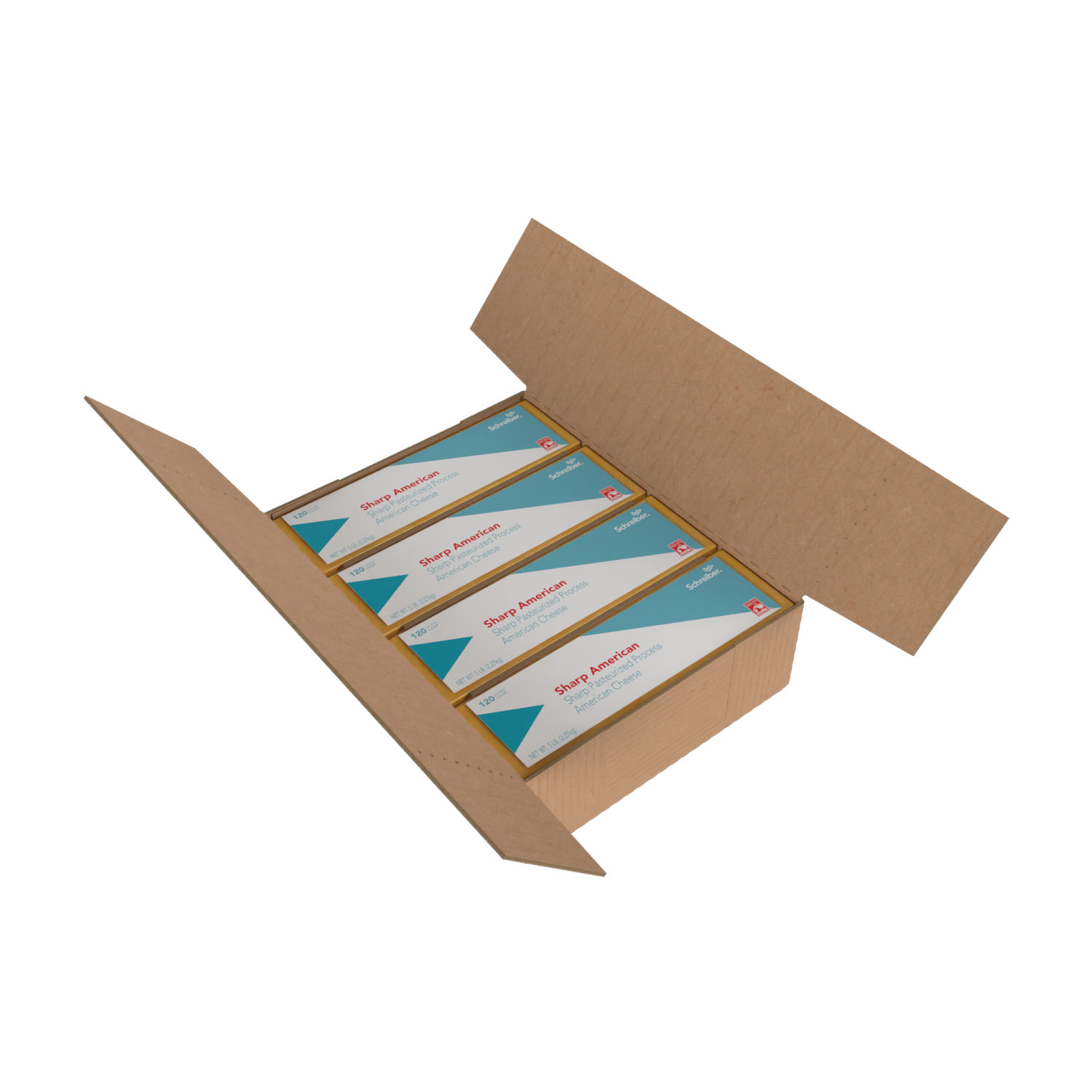 SCHREIBER YELLOW PASTEURIZED PROCESS SHARP AMERICAN SLICES – 4/5# FLOW THROUGH WRAPPER 120 SLICES