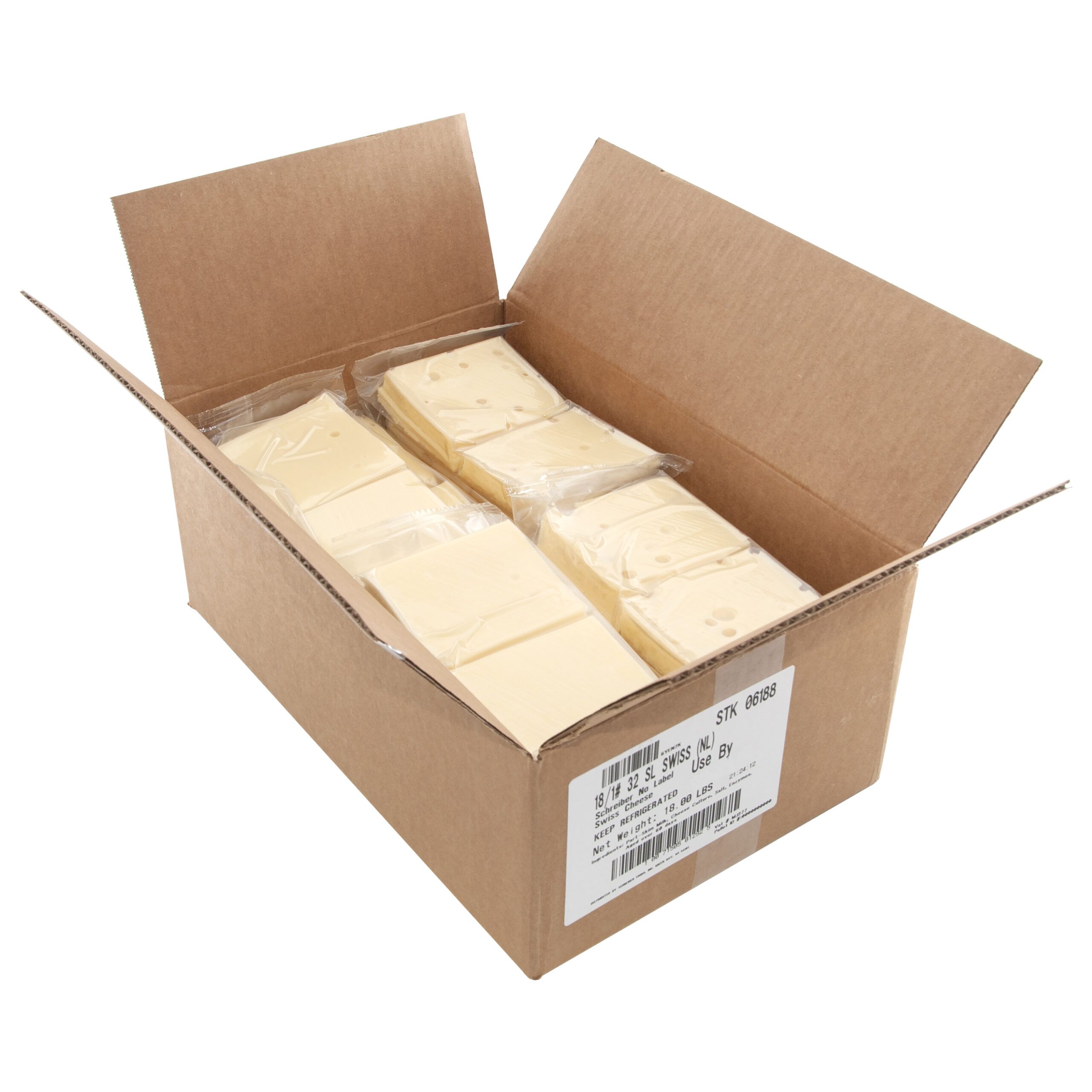 Our Swiss cheese slices feature a mild, sweet, nutty flavor profile and a firm body and smooth texture that melts beautifully when heated. Whether you’re serving up hot or cold sandwiches or creating a mouthwatering meat and cheese tray, this natural cheese is the perfect addition to your menu lineup!