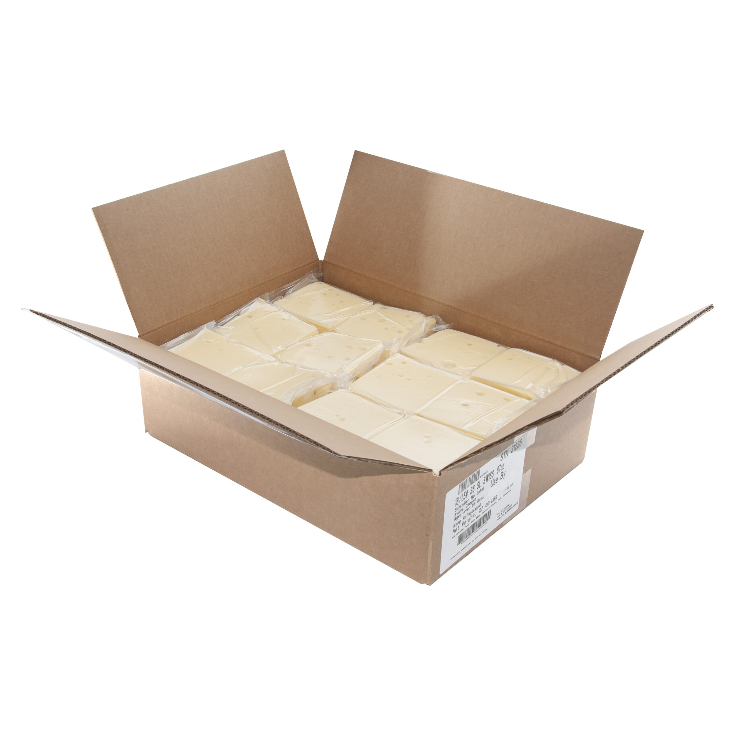 Our Swiss cheese slices feature a mild, sweet, nutty flavor profile and a firm body and smooth texture that melts beautifully when heated. Whether you’re serving up hot or cold sandwiches or creating a mouthwatering meat and cheese tray, this natural cheese is the perfect addition to your menu lineup!